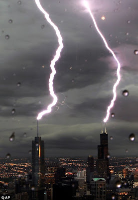 Photos of lighting striking the Willis Tower in downtown Chicago - looks like something out of